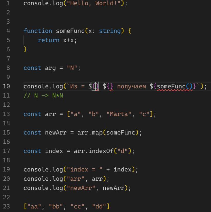помогите пожалуйста нужно Переписать функцию someFunc таким образом, чтобы она возвращала значение своего параметра в виде “значение*значение”. Использовать форматирование строк с помощью обратных кавычек `.return x+"*"+x нужно заменить на выражение в обратных кавычках