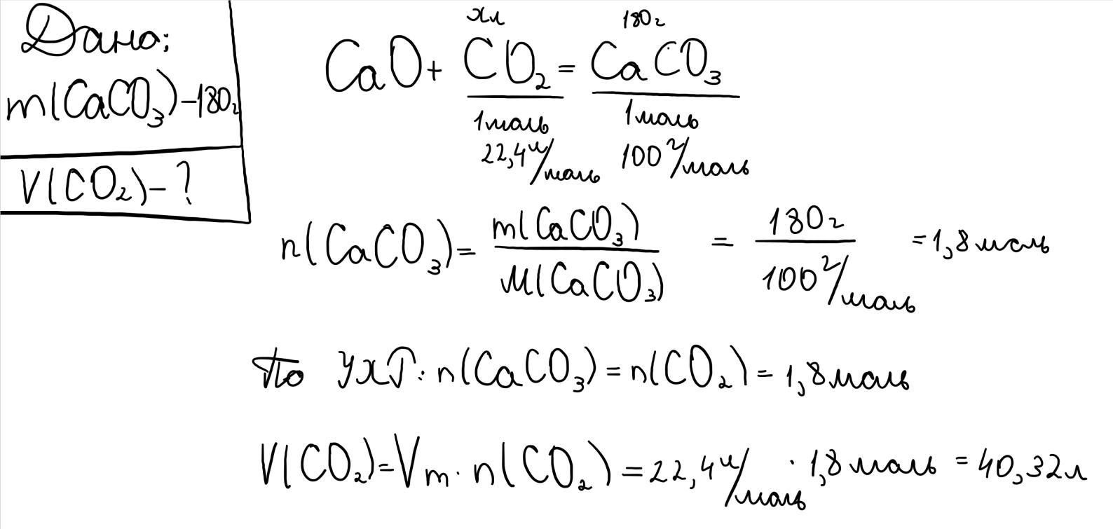 Визначити об'єм карбон 4 оксиду, якщо при його взаємодії з кальцій оксидом утворилось 180 г солі.