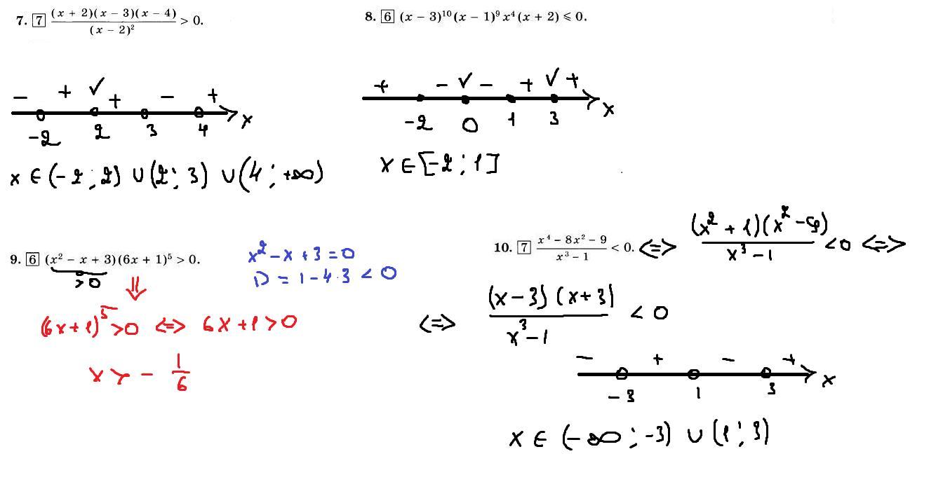 Это называется метод интервалов. Когда я на прямой ставил над точками галочки, то это означало, что чередование знаков останавливается. Галочка ставится тогда, когда мы видим чётную степень!