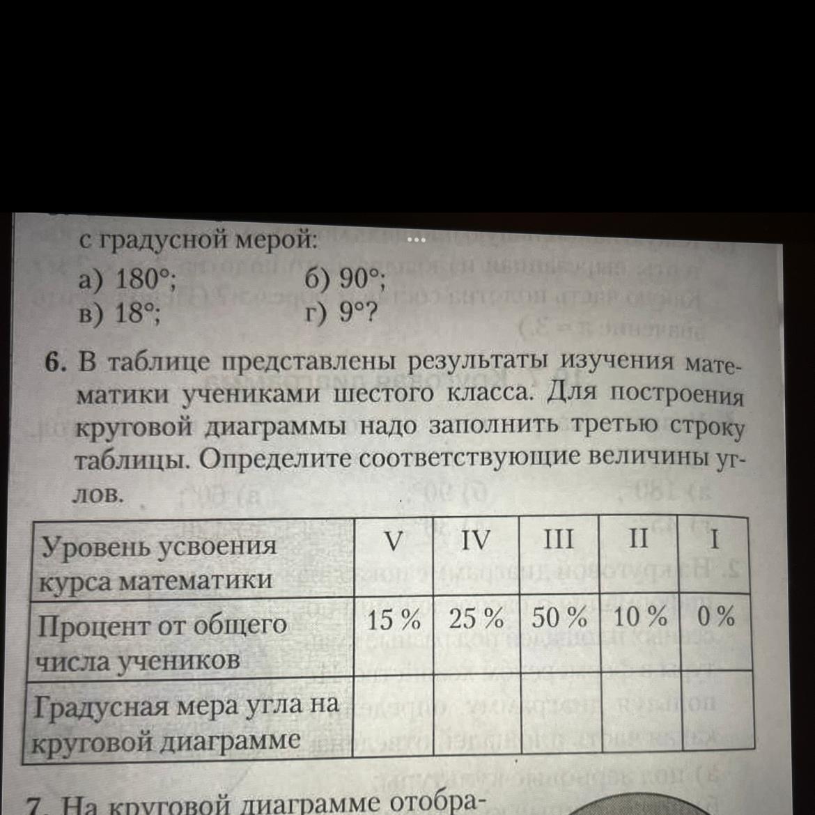 так как круговая диаграмма, это круг, то всего у нас есть 180°