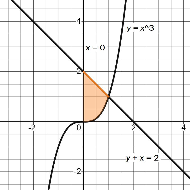 Вычислить двойной интеграл по области D: {{xdxdy, D: y = x³, x = 0, y + x = 2