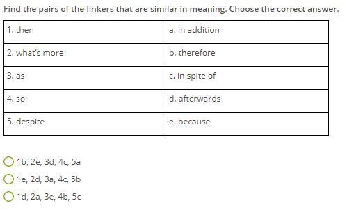 Find the pairs of the linkers that are similar in meaning. Choose the correct answer.