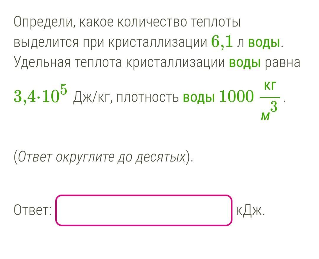 Q=LVρ=3,4*10⁵*0,0061*1000=2074000Дж=2,074МДж