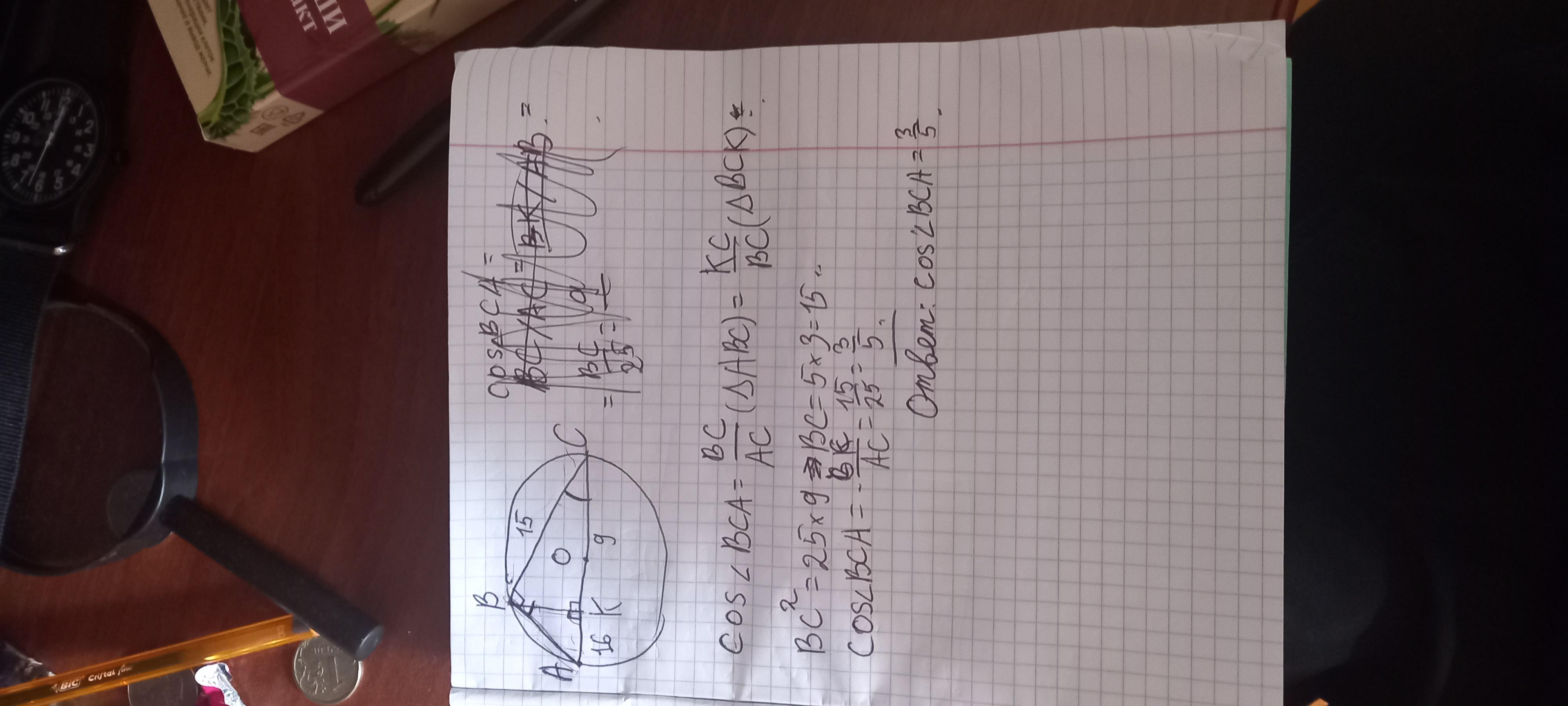 cos(BCA)= KC/BC = 9/15 = 3/5. Это и есть наш ответ.
