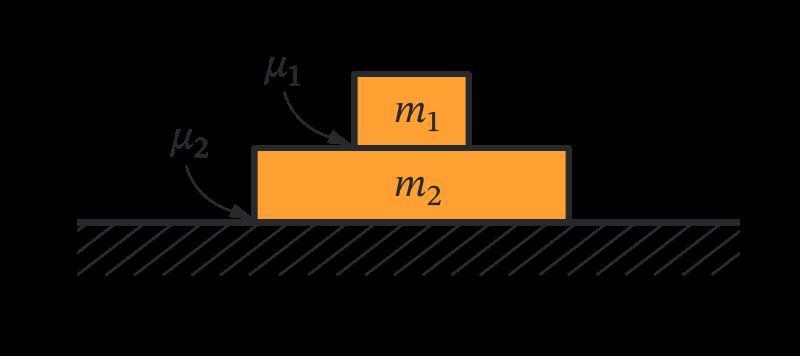 Известно, что система выйдет из состояния равновесия, если к нижнему бруску приложить горизонтальную силу не менее F1 = 7,8Н. А какую минимальную горизонтальную силу нужно прикладывать к верхнему бруску, чтобы система вышла из положения равновесия? Ответ дайте в Н, округлив до десятых.