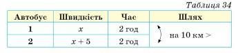 По данным таблицы можно понять, что 2-й автобус прошел на 10 км больше, поэтому получим уравнение: