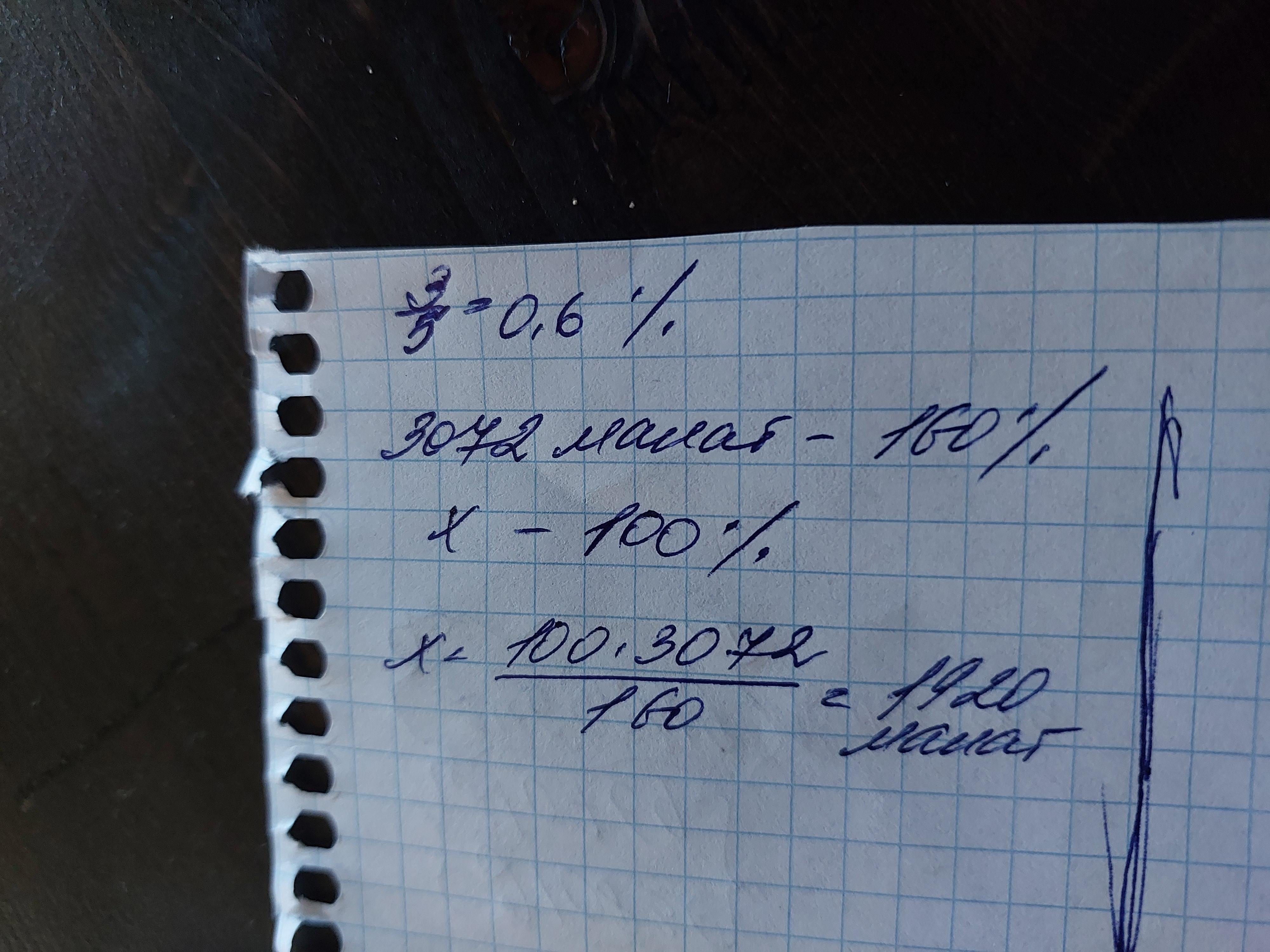 Деньги вложенные в банк увеличиваются на 3/5 часть.Сколько денег вложил Мурад если через два года на счету оказалось 3072 маната?