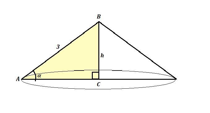 ΔАВС , ∠С=90° , ∠А = α , АВ = 3 .