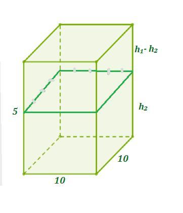 Размеры бака 10 Х 10 Х 5 дм , высота h₁ = 5 дм .
