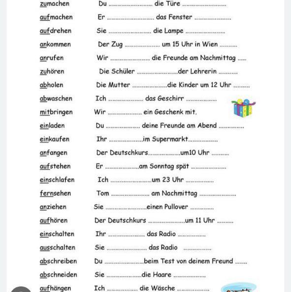 12. Der Deutschkurs fängt um 10 Uhr an.