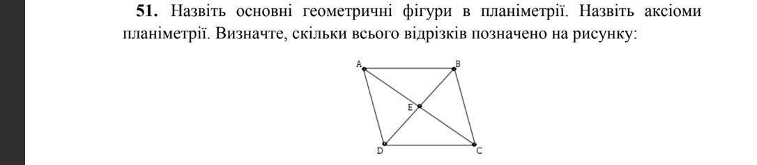 На рисунку зображено всього 10 відрізків (AB, BC, CD, AD, AC, DB, AE, EC, BE, ED)