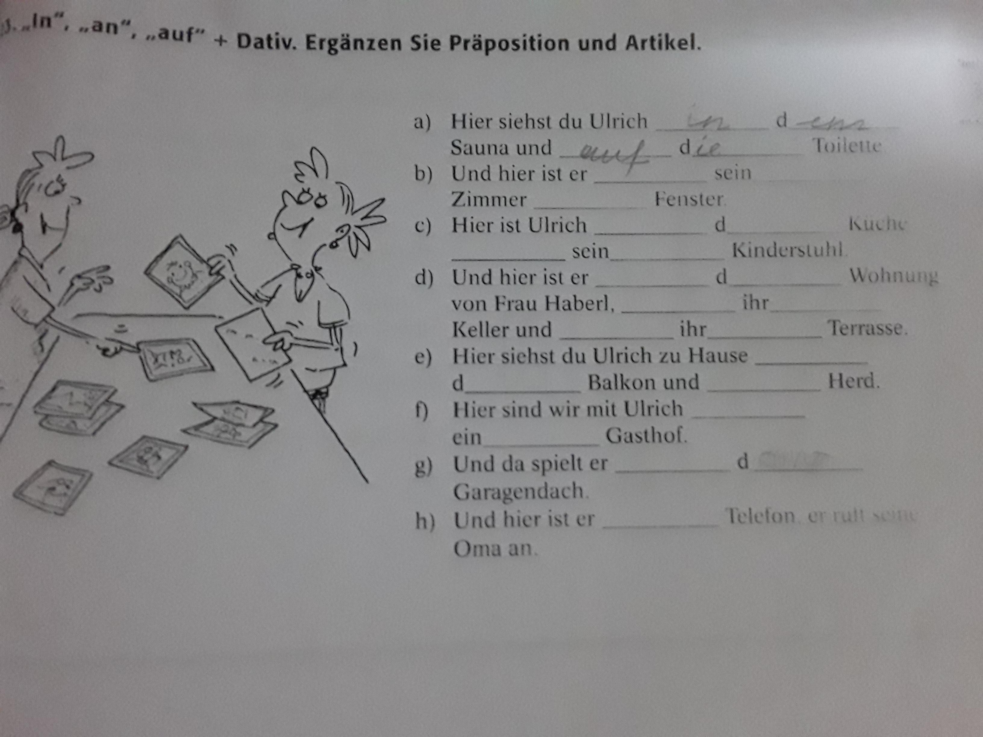 "In" , "an" , "auf" + Dativ. Ergänzen Sie Präposition und Artikel. Помогите пожалуйста даю 25 баллов!!!