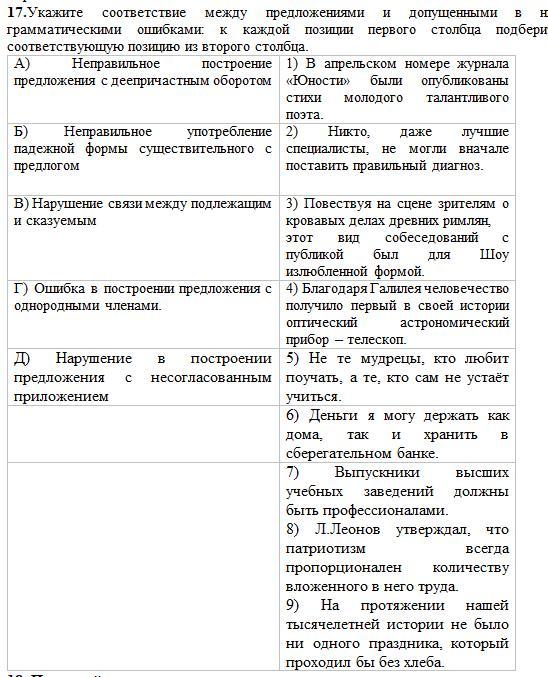 Укажите соответствие между предложениями и допущенными в них грамматическими ошибками: к каждой позиции первого столбца подберите соответствующую позицию из второго столбца