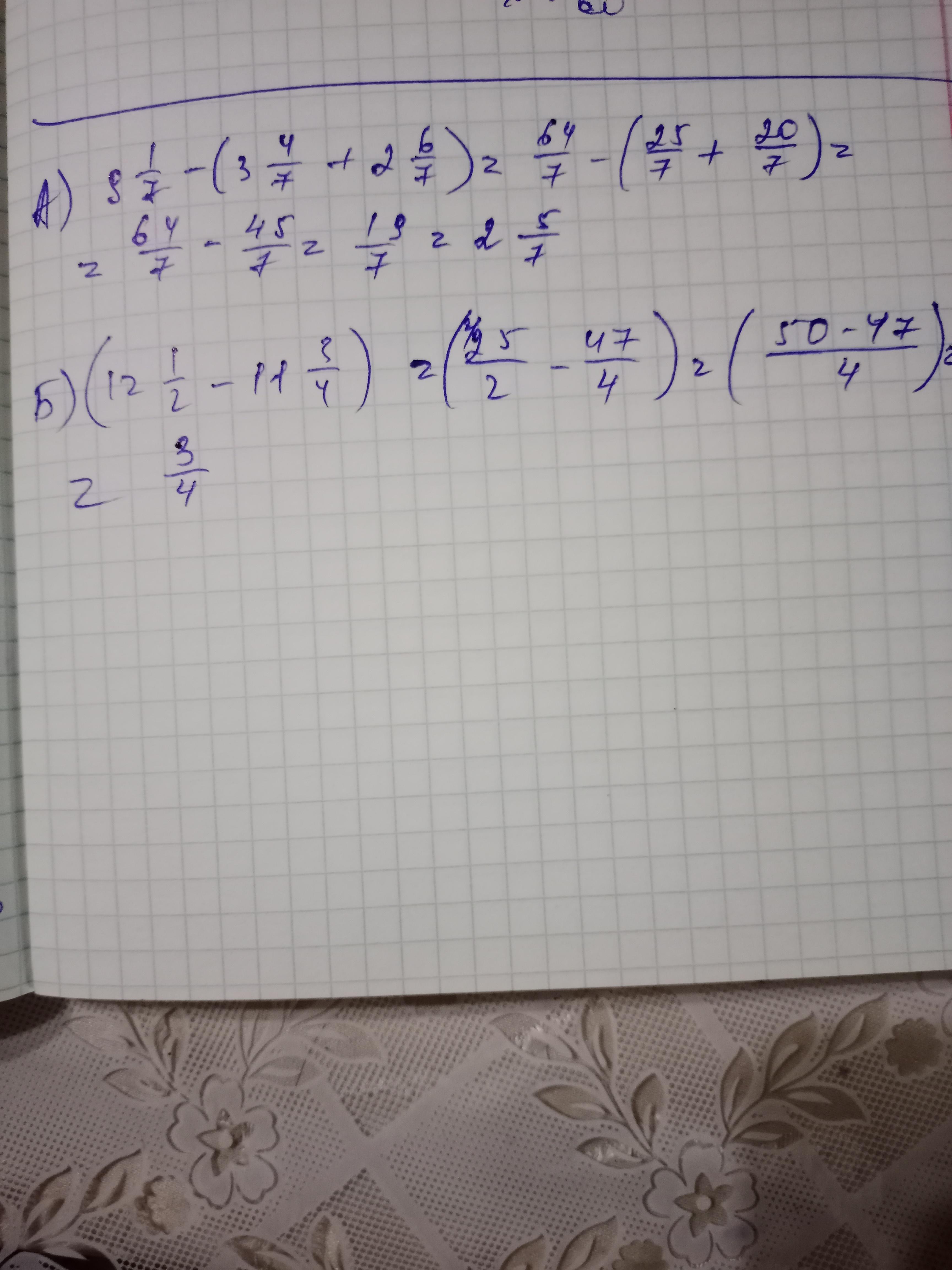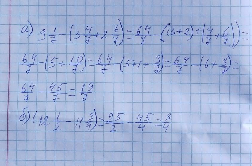 а) 9 1/7 - ( 3 4/7 + 2 6/7)