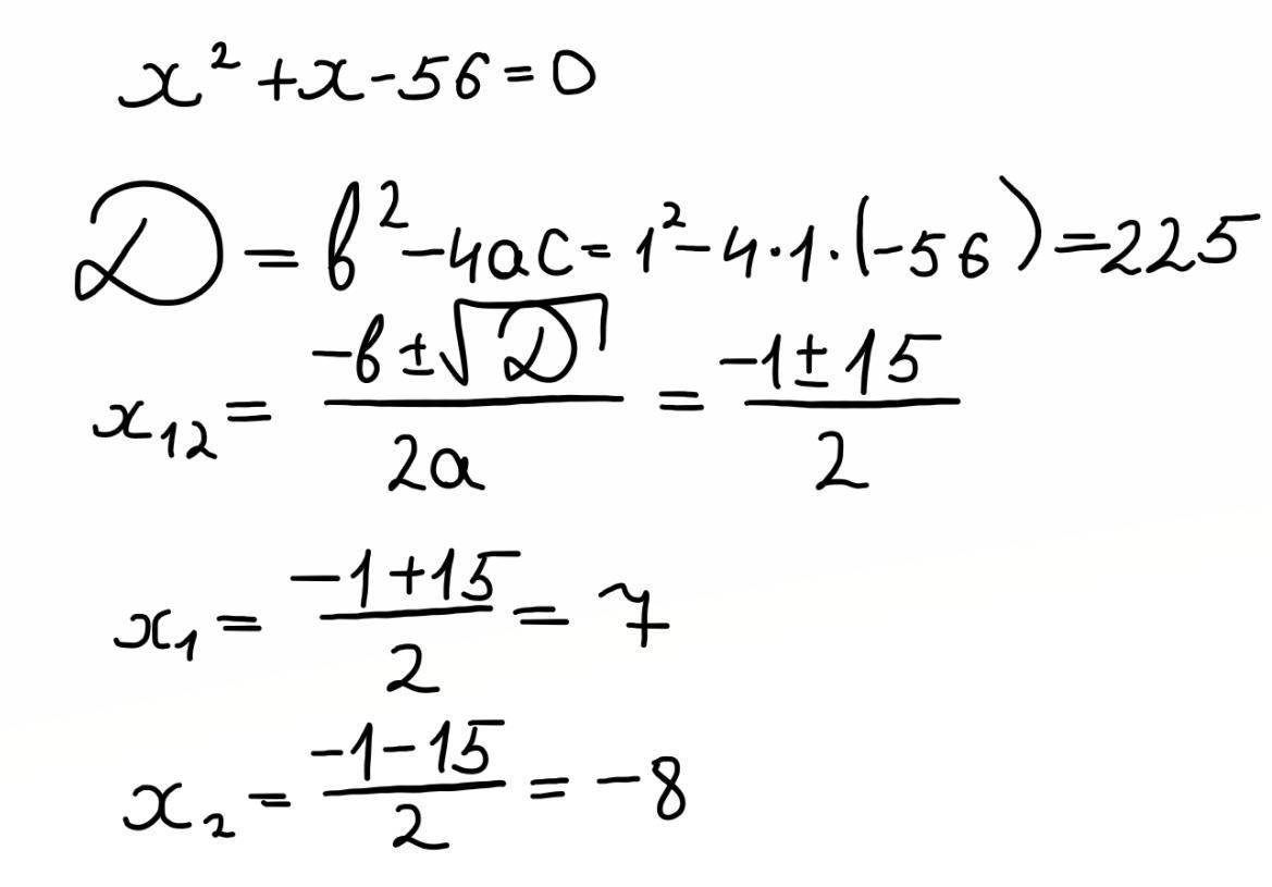 1 в квадрате-это 1; -4*(-56)=+224(т.к. минус на минус дает плюс), а 1+224=225
