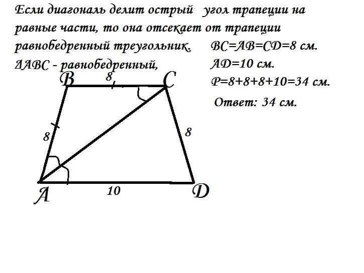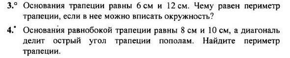 3. Если трапецию можно вписать в окружность, то сумма оснований равна сумме боковых сторон.