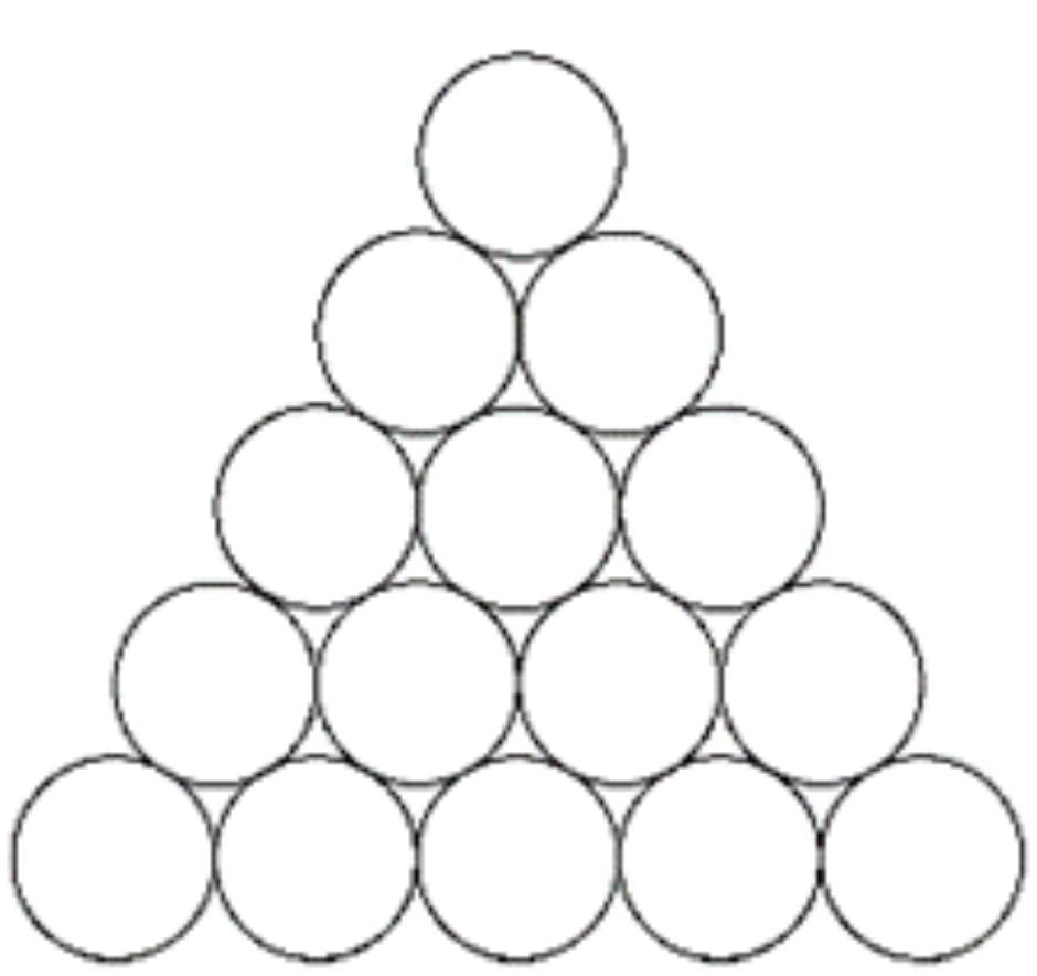 55 шаров расположены в виде равностороннего треугольника. Определить, на сколько рядов разбросаны шары