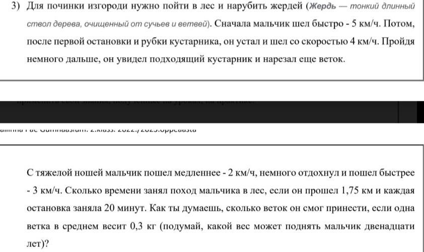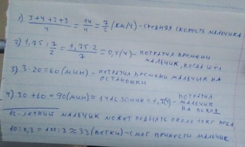 Ответ: мальчик потратил на поход в лес 1,5 часа и смог принести примерно 33 ветки.