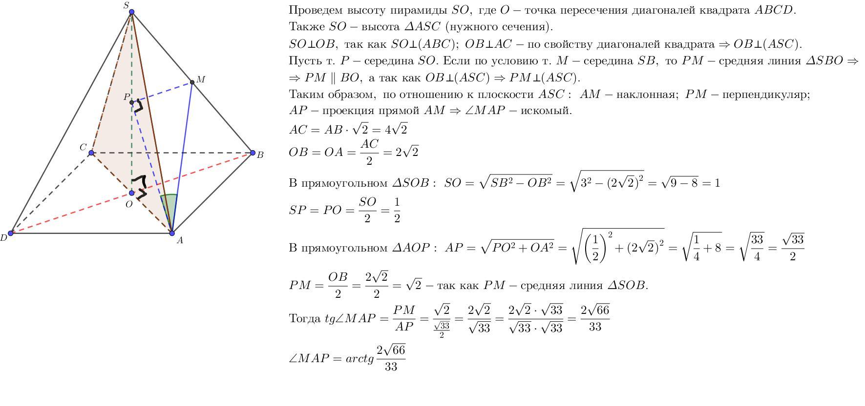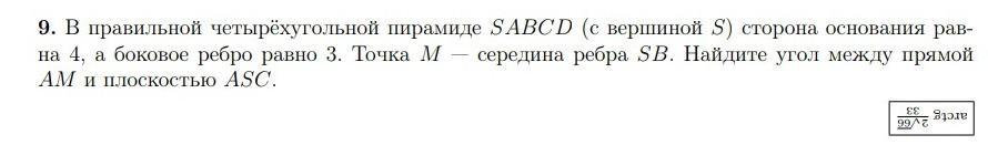 Решите задачу подробно с рисунком геометрическим методом. (НЕ векторным) . Ответ должен получиться arctg 2 корень из 66 / 33