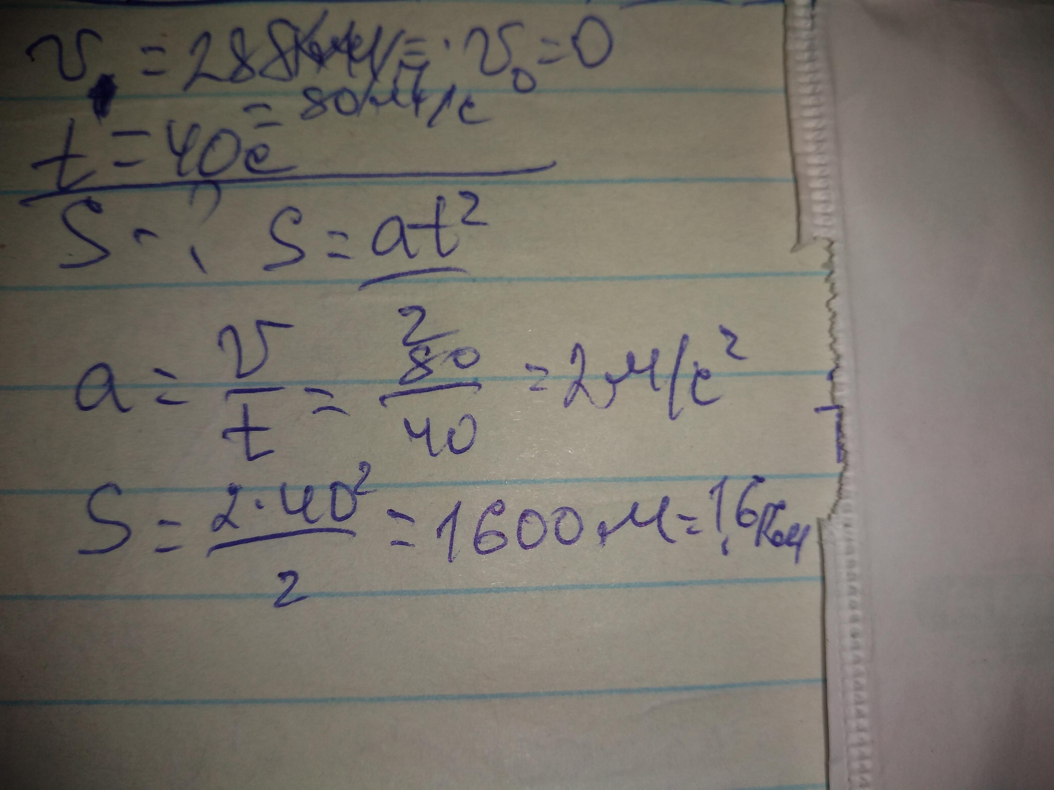 S=Vo*t+at²/2=at²/2=2*40²/2=1600м