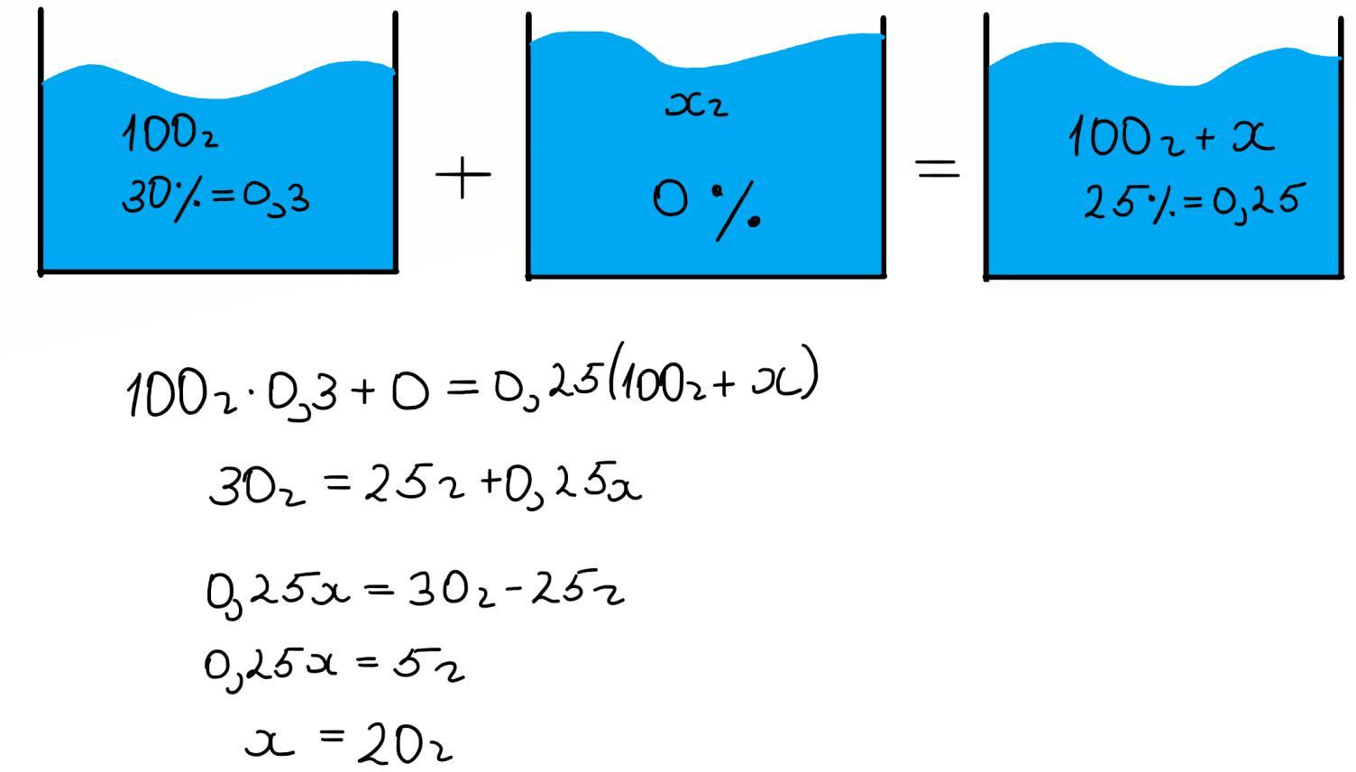 Яку кількість води в г потрібно додати до 100 г 30% розчину сульфату натрію для того, щоб отримати 25%?