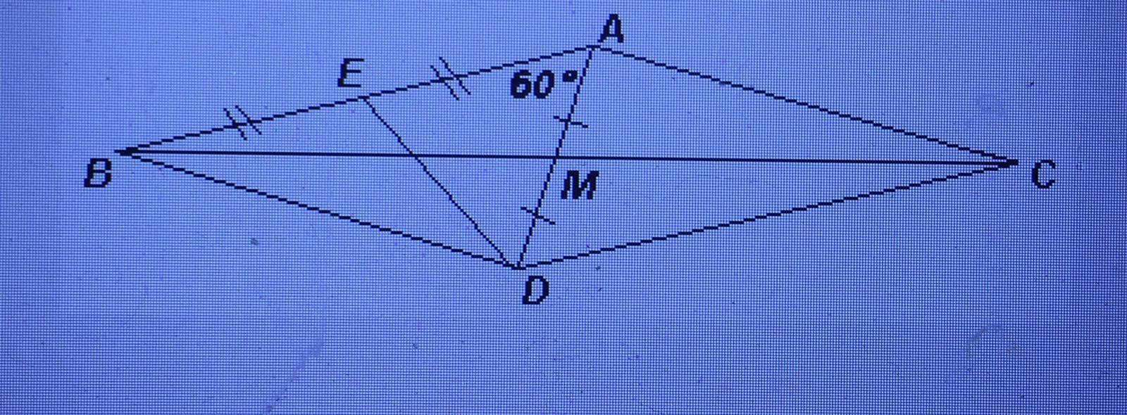 Продлив медиану АМ на ее длину, получим параллелограмм ABDC . В треугольнике АВD проведём медиану DE, тогда АЕ = ½ АВ = AD. Тогда, треугольник АDЕ – равнобедренный с углом 60°, то есть равносторонний. Следовательно, медиана DE треугольника АВD равна половине стороны АВ, к которой она проведена; значит, этот треугольник – прямоугольный,∠СAD-90°. Тогда ∠ВАС = ∠ВAD + ∠СAD = ∠ВAD + ∠ADB = 60+90°=150°.