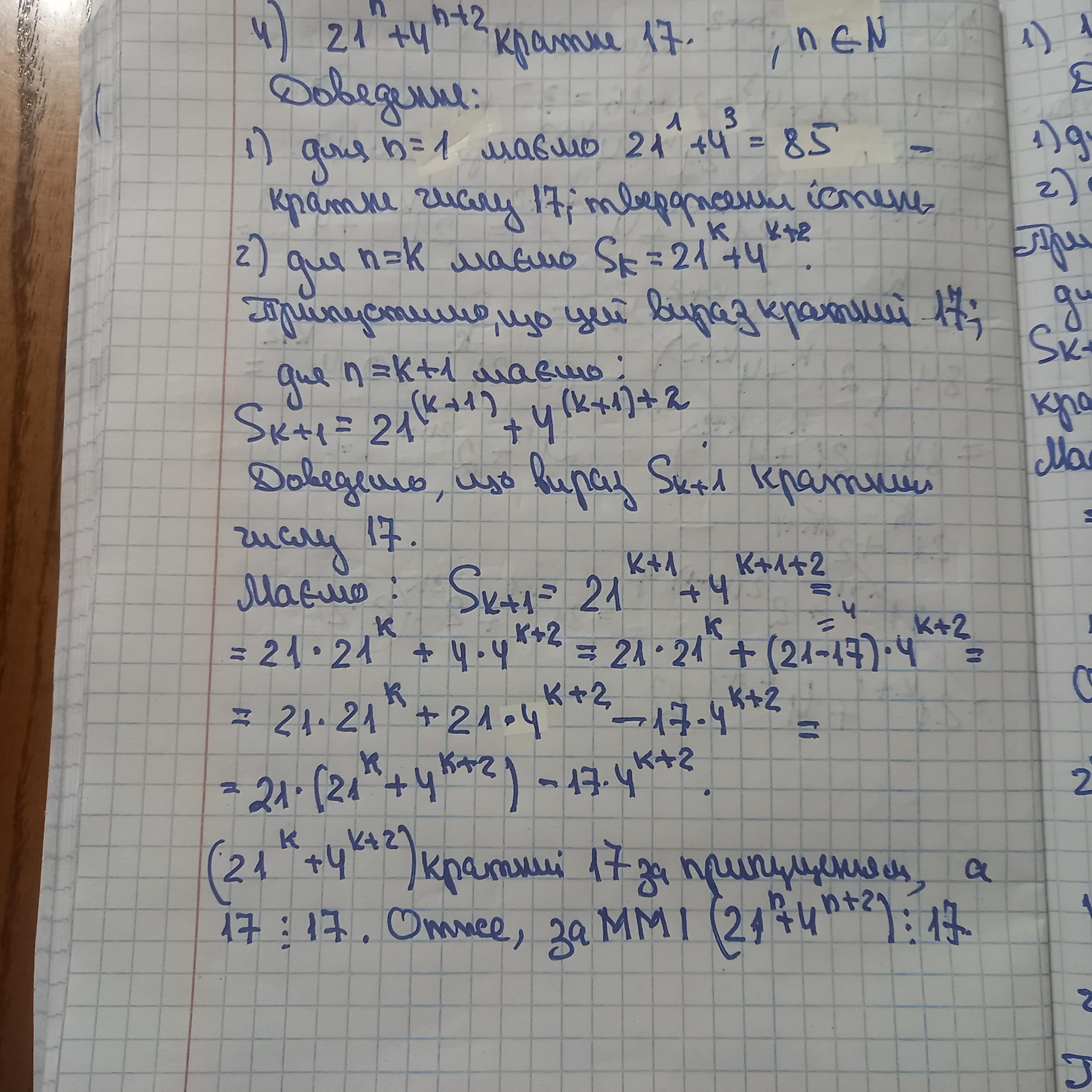 4) 21ⁿ + 4ⁿ⁺² кратне 17