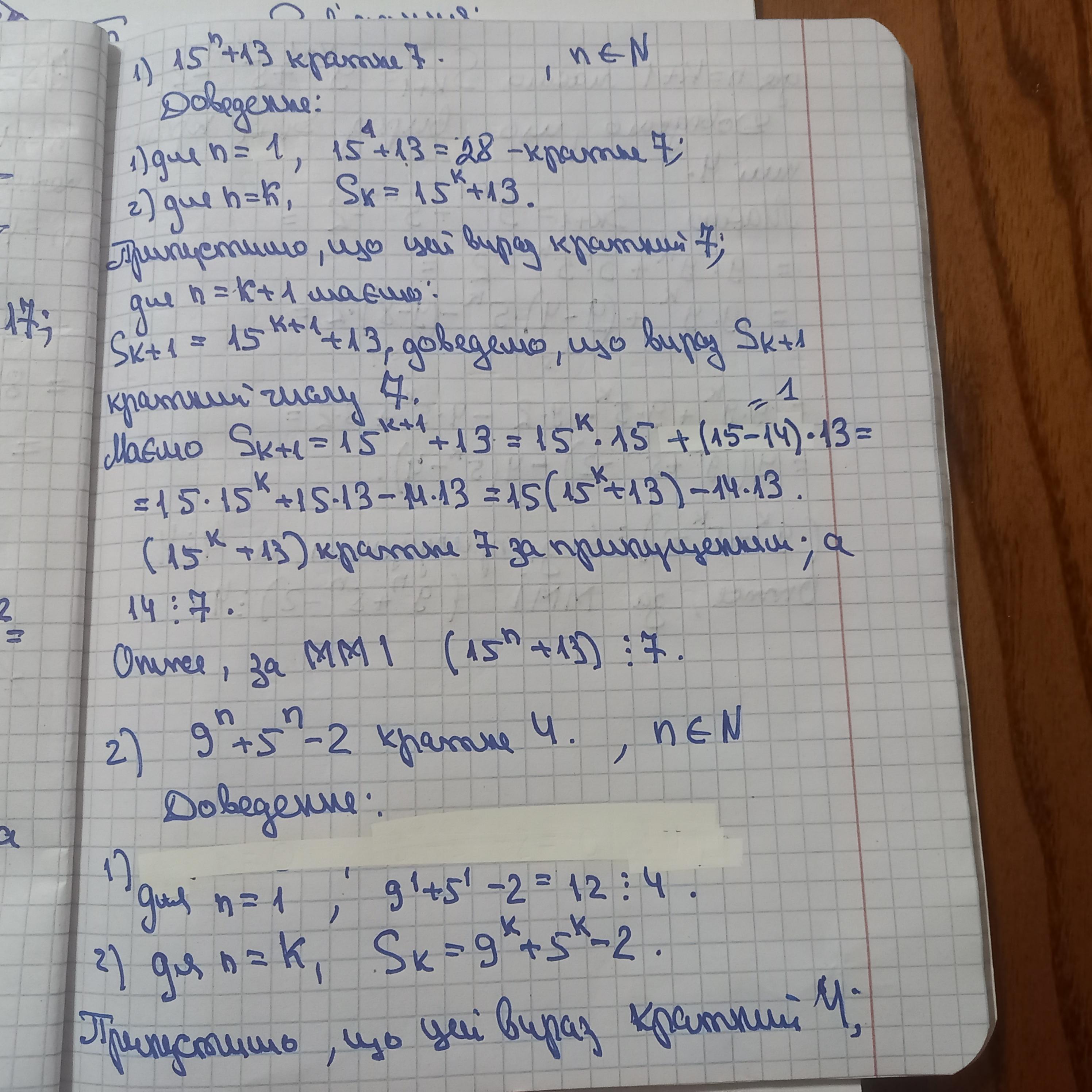 15ⁿ+13 ≡ (15 -2·7)ⁿ + 13 ≡ (15 - 14)ⁿ + 13 ≡ 1ⁿ + 13 ≡ 13 + 1 ≡ 14 ⋮ 7 ⇒