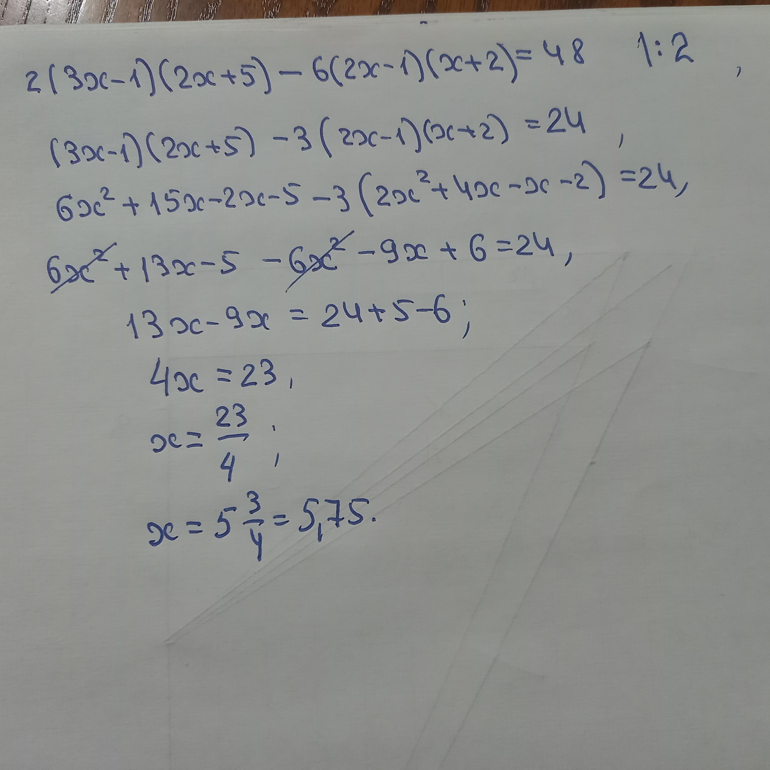 2(3x-1)(2x+5)-6(2x-1)(x+2) = 48