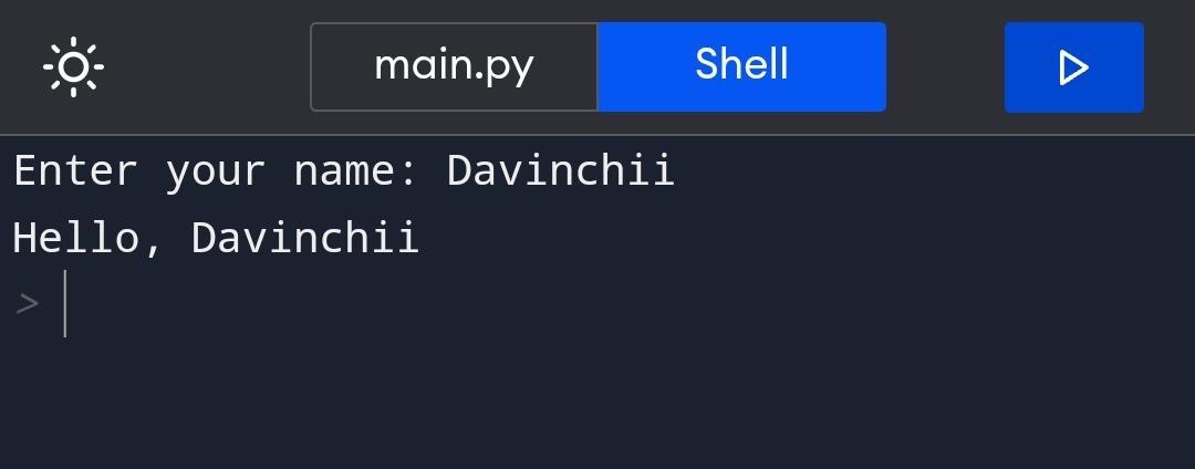 This code will display the message "Enter your name: " and wait for the user to enter their name. Once the user enters their name and presses enter, the program will print "Hello, [name]" where [name] is replaced by the value entered by the user.