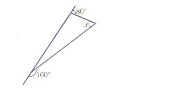 1)180°-160°=20°, суміжні; 2)х=80°-20°=60°, властивість зовнішнього кута.