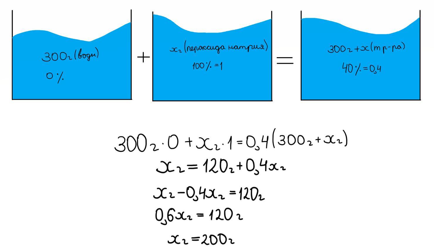 сколько грамм пероксид натрия нужно добавить в 300 грамм воды для получения 40 процентный раствор