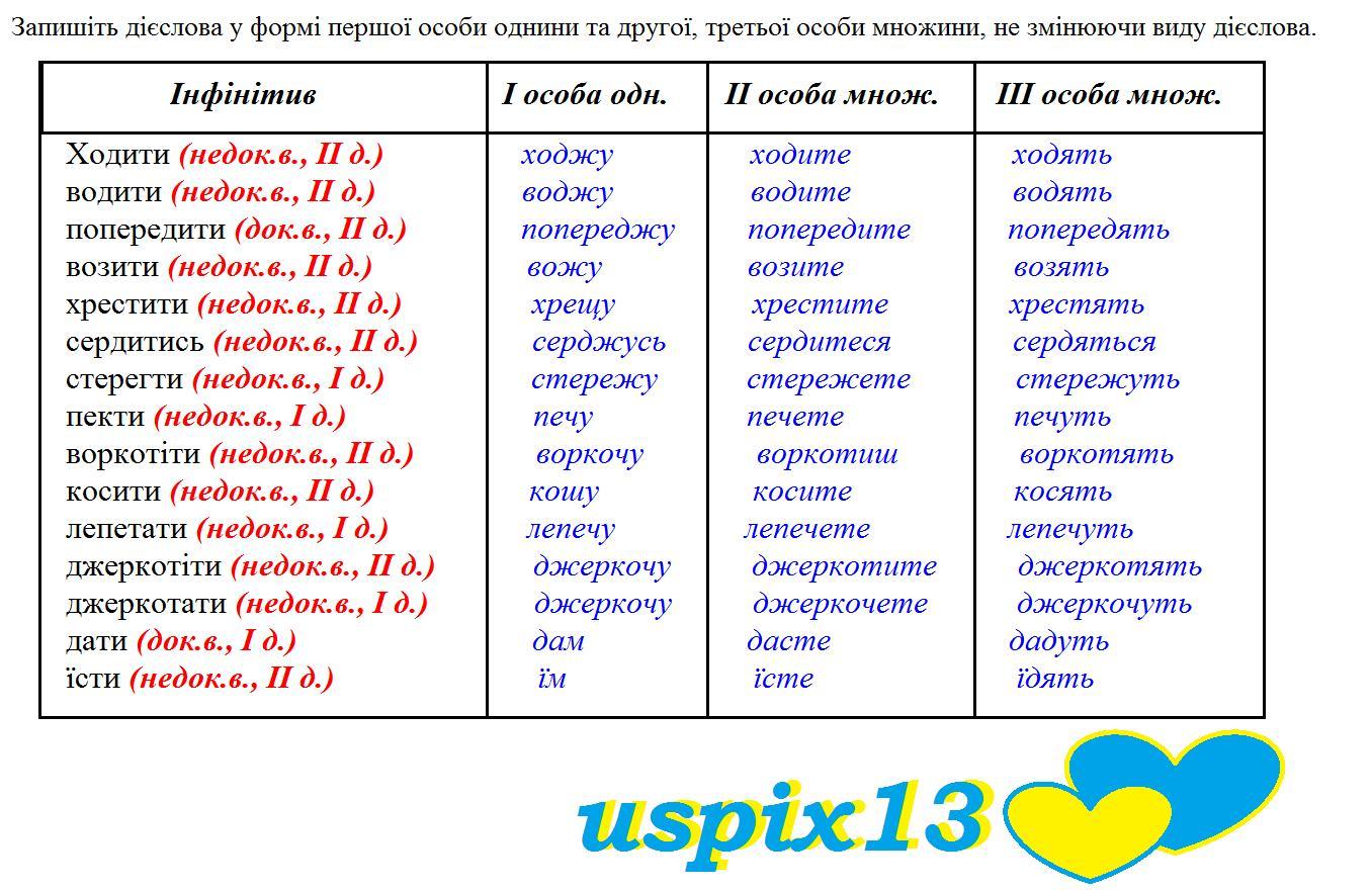 Ходити, водити, попередити, возити, хрестити, сердитись, стерегти, пекти, воркотіти, косити, лепетати,