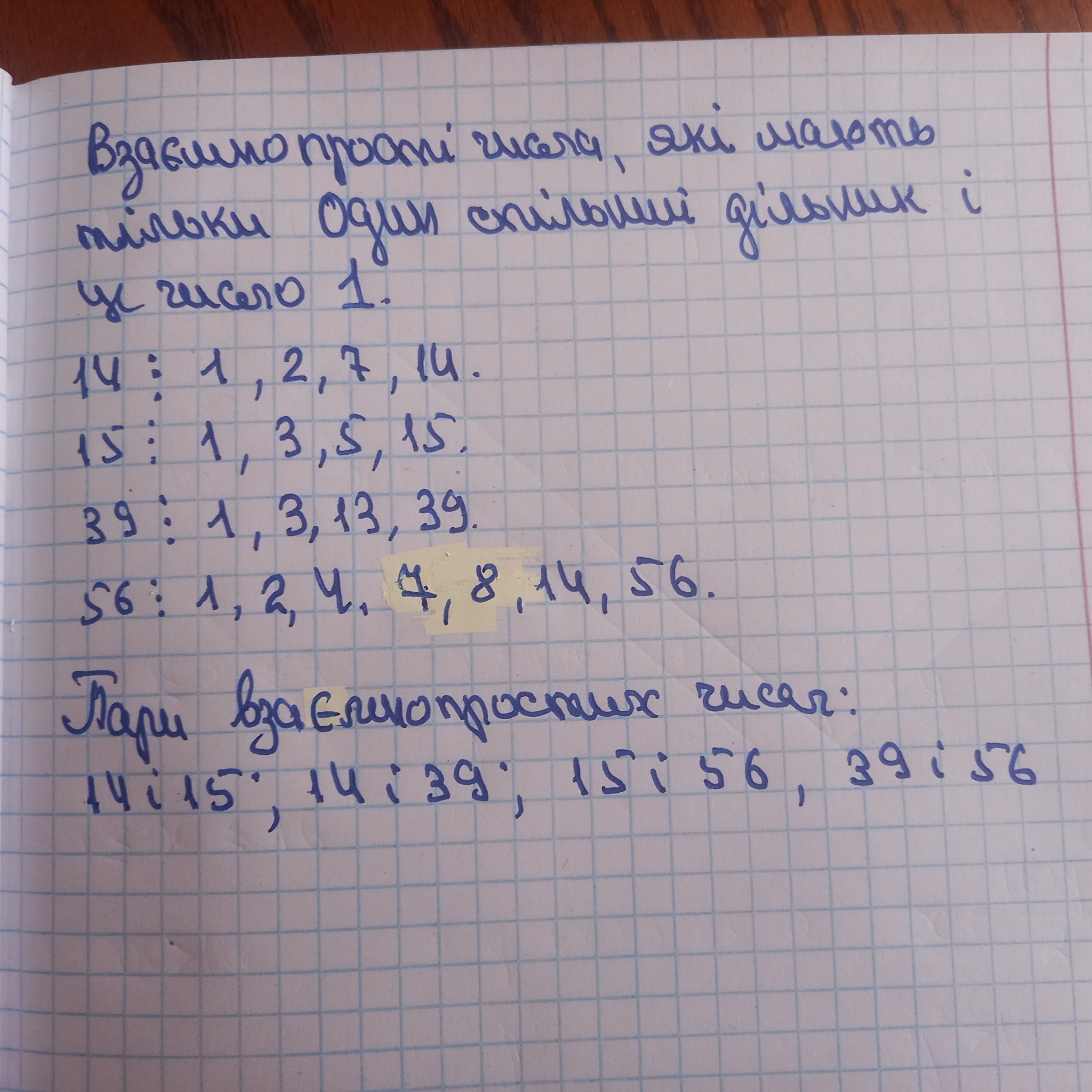 => Взаимно простые 14 и 15 , 14 и 39, 15 и 56, 39 и 56