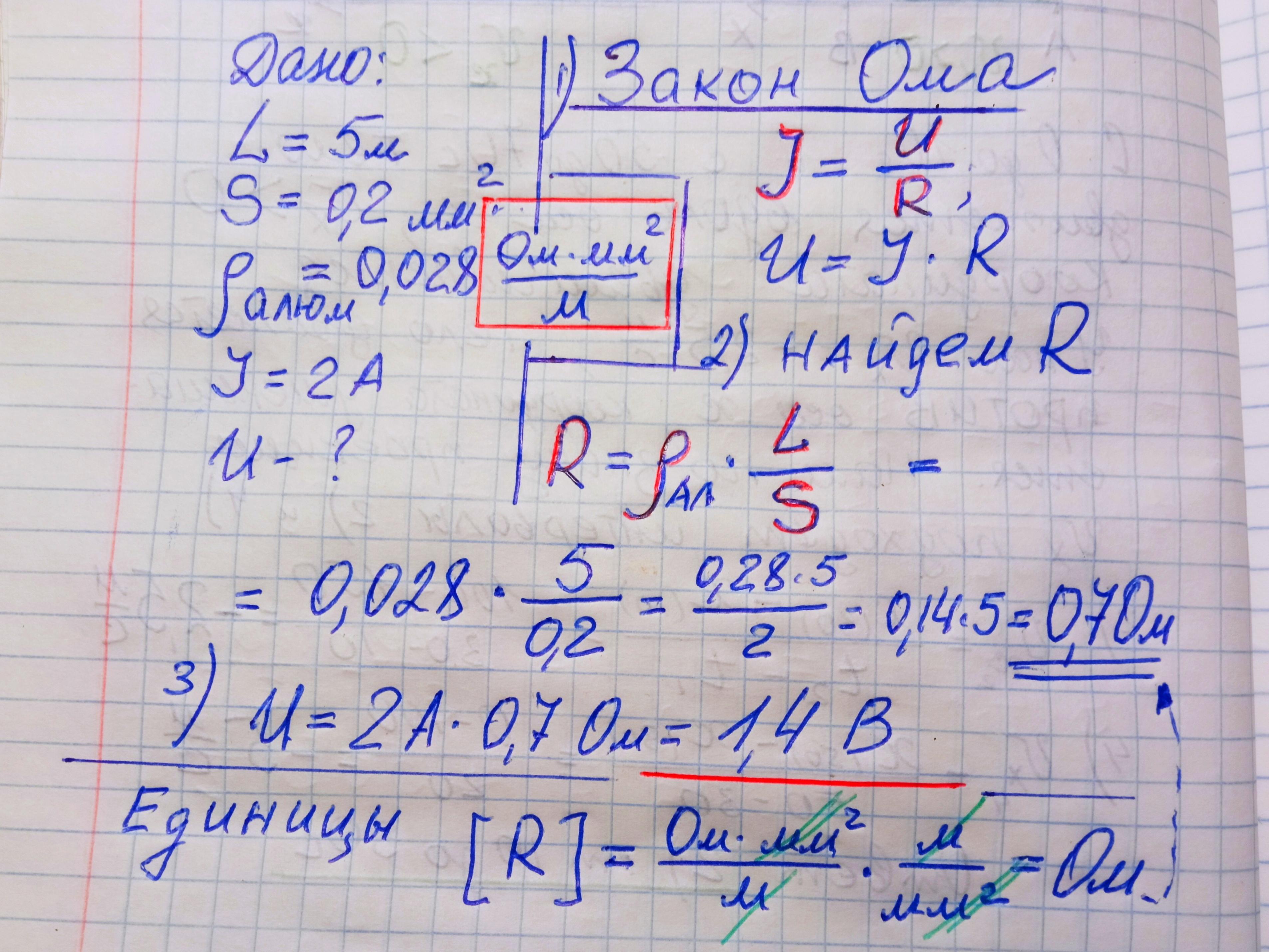 R=pL/S. р - удельное сопротивление алюминия из таблицы. Зная сопротивление R, найдете напряжение U=IR.