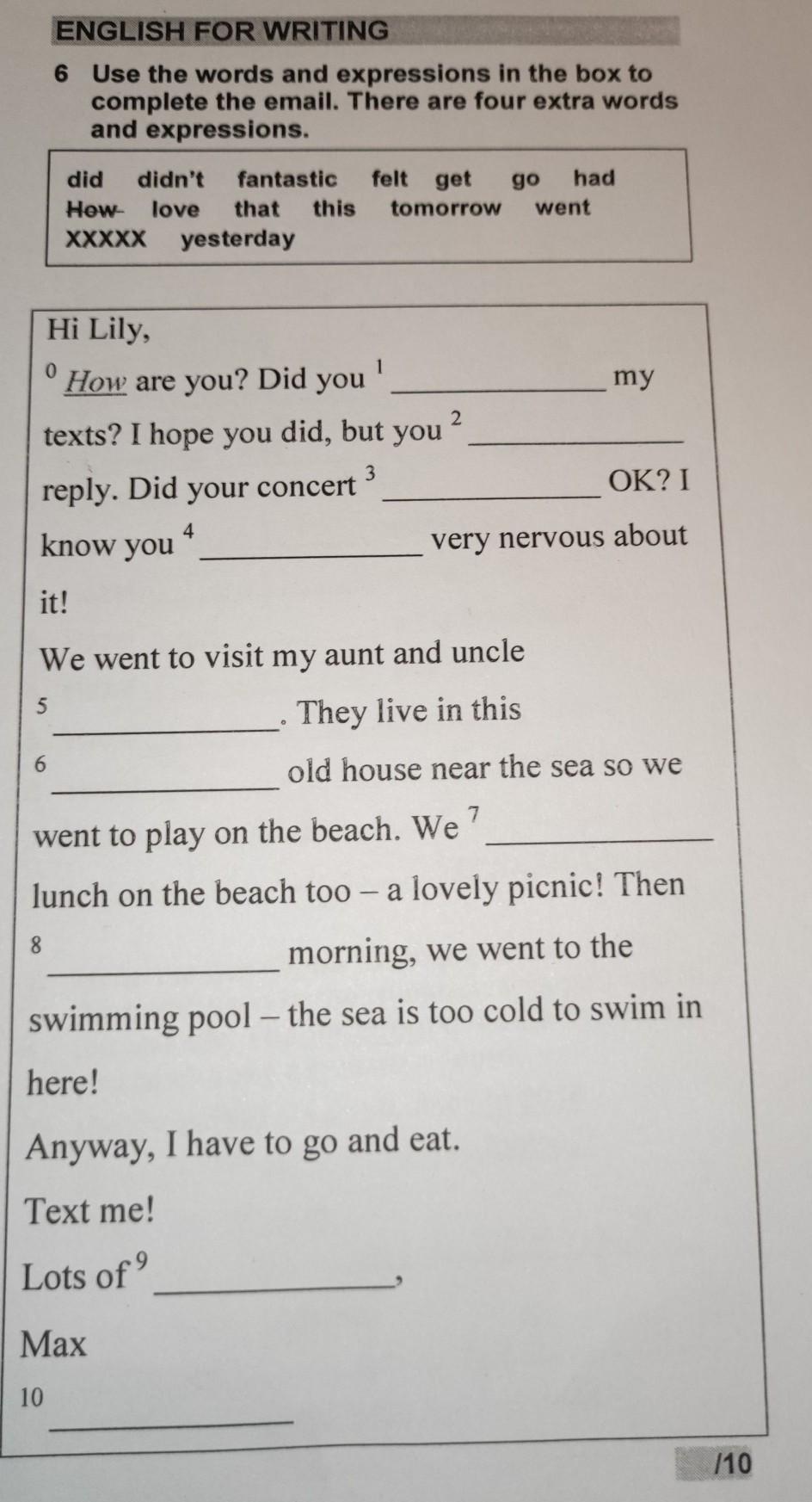 Объяснение: А лишние слова и выражения: that, tomorrow, went, XXXXX
