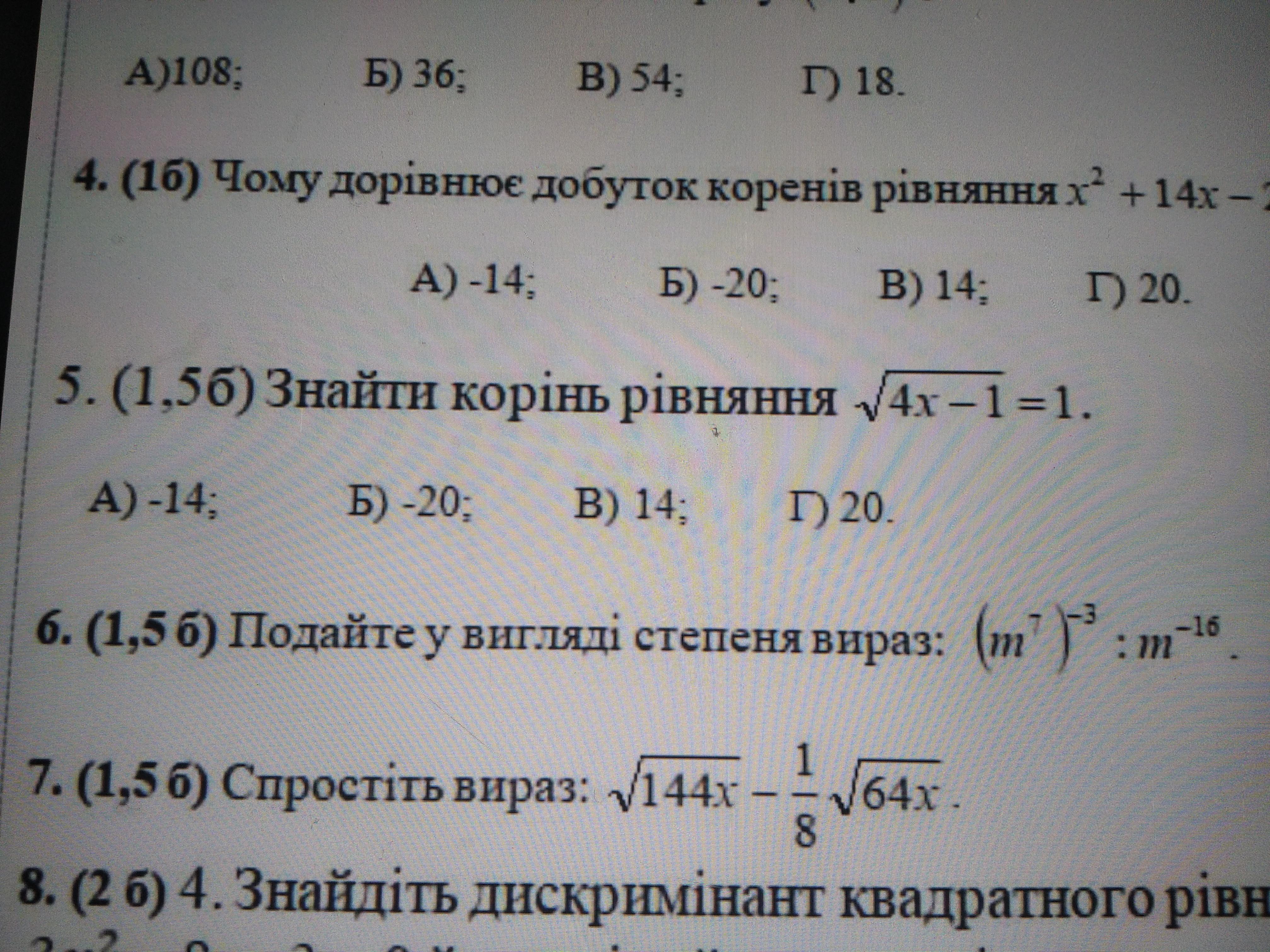 в варіантах відповідях помилково надруковані відповіді з питання 4.
