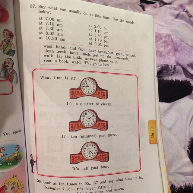 4:10- read a book(a потом 9:05 гоу то бед) мне лень на англ было писать