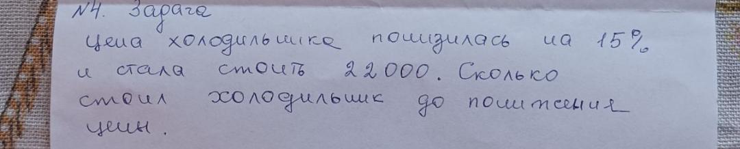 (Цена холодильника понизилась на 15% и стала стоить 22000. Сколько стоил холодильник до понижения цены)