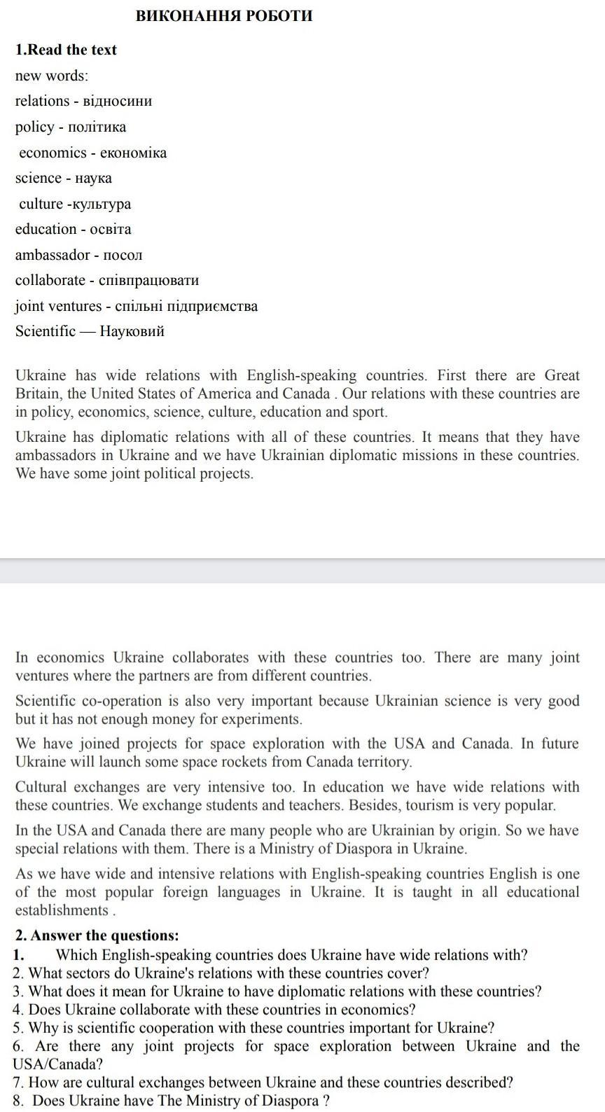 1. Ukraine has wide relations with Great Britain, USA and Canada.