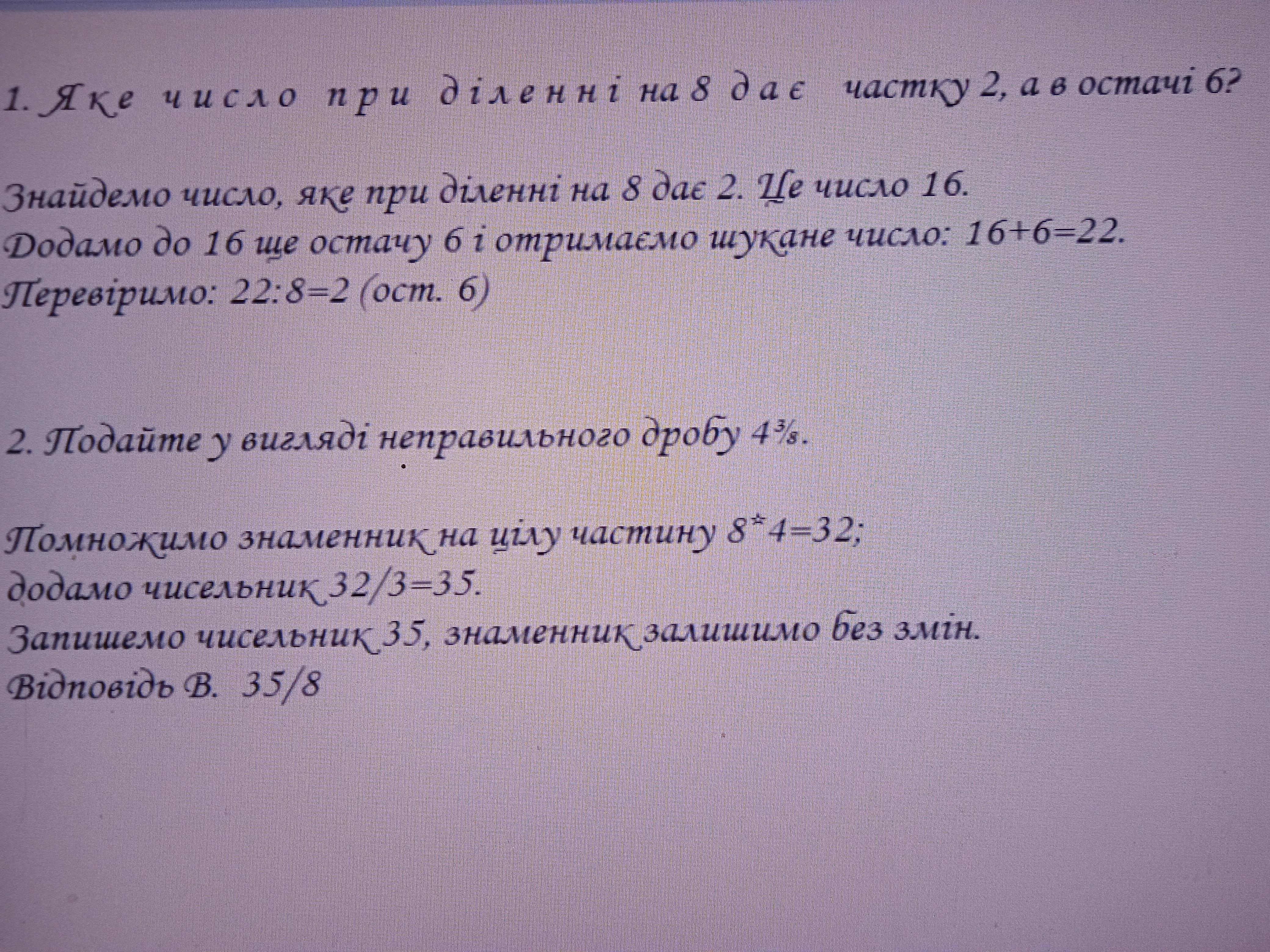 1 Яке число при діленні на 8 дає в частці 2 ,а в остачі 6 ?