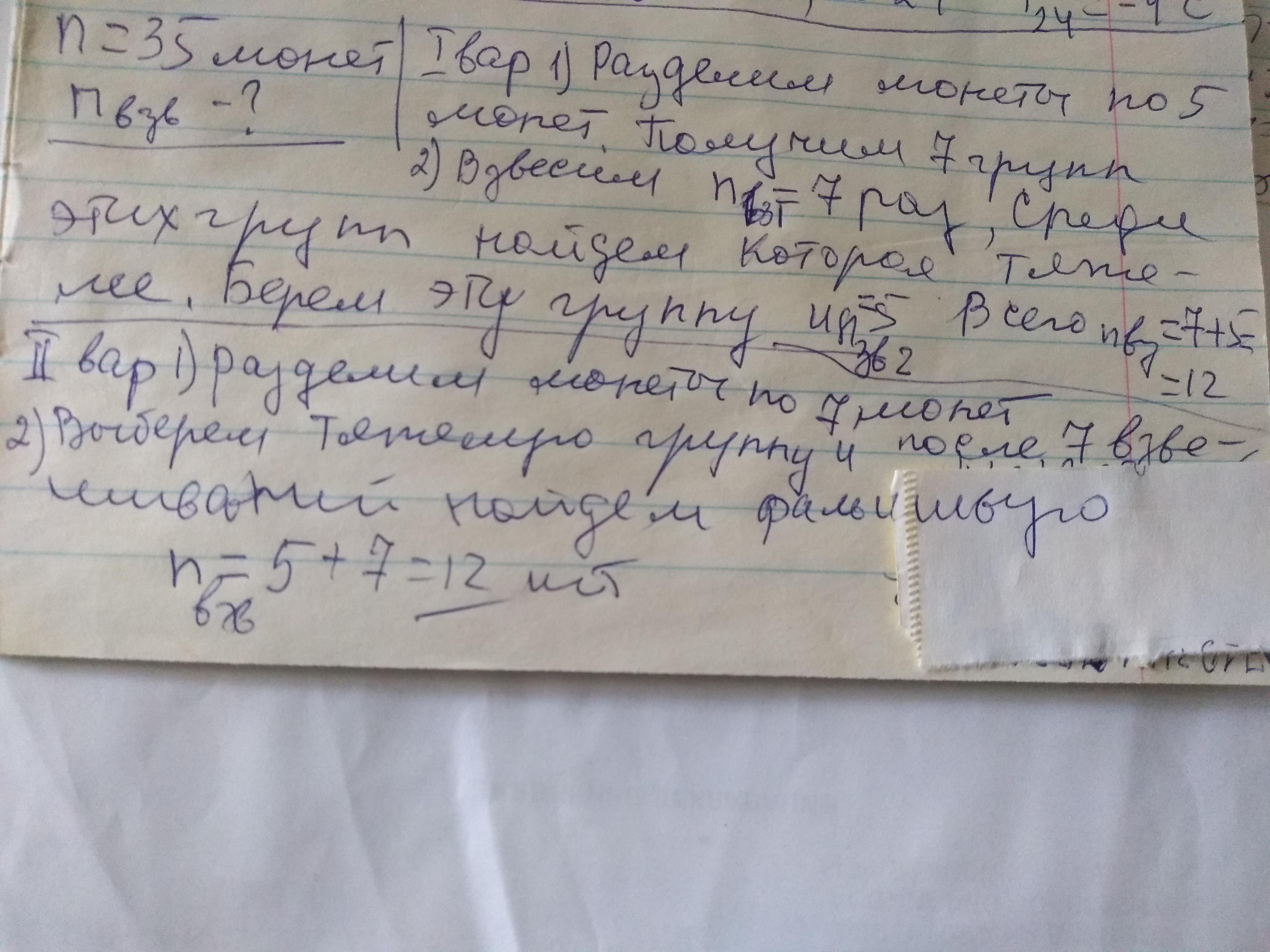 35, ти повенин зважити 35 монет і одна з них буде ваща за інші