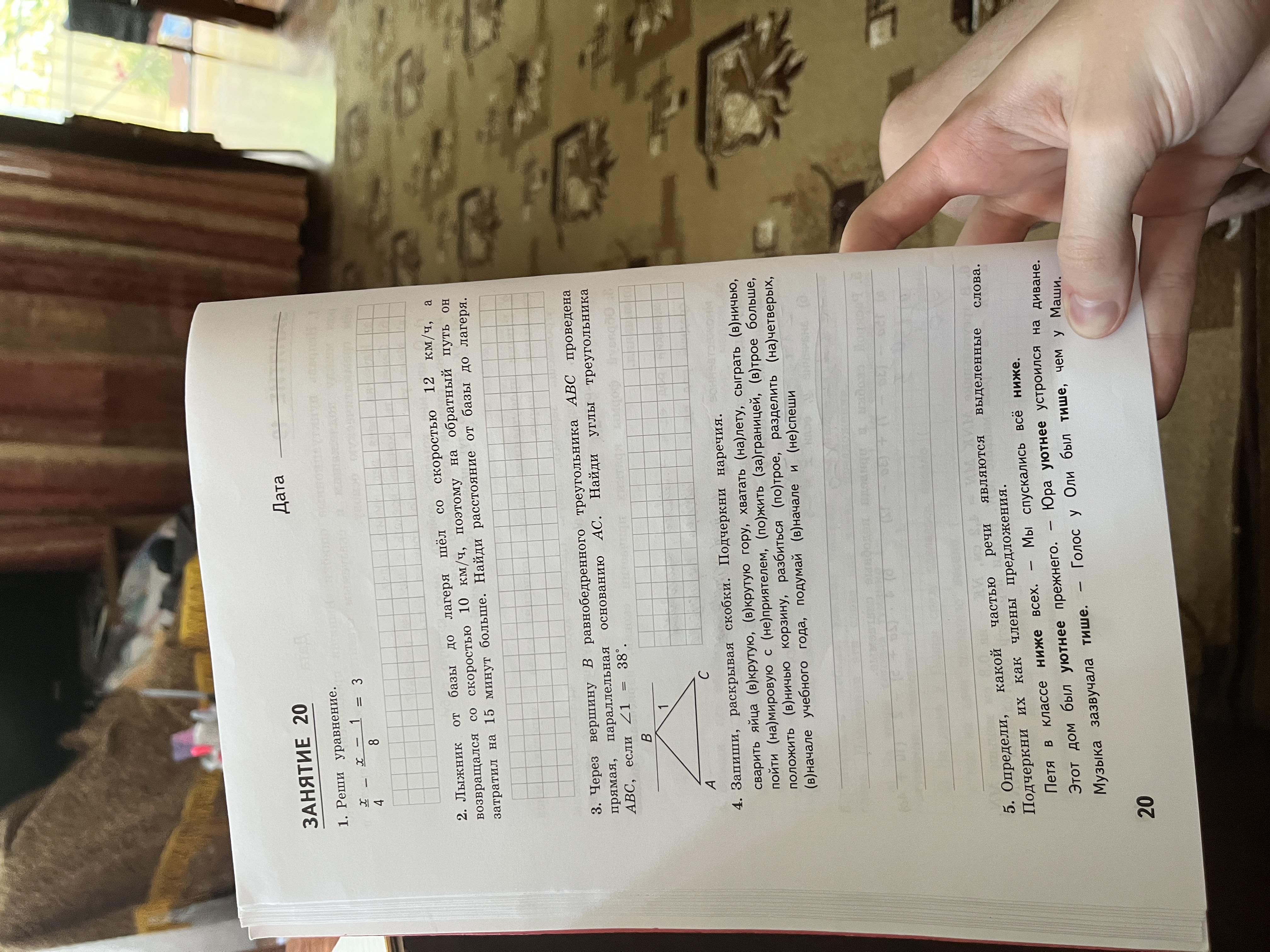 Зная, что лыжник на обратный путь потратил на 15 минут (15/60=0,25ч) больше времени составим уравнение: