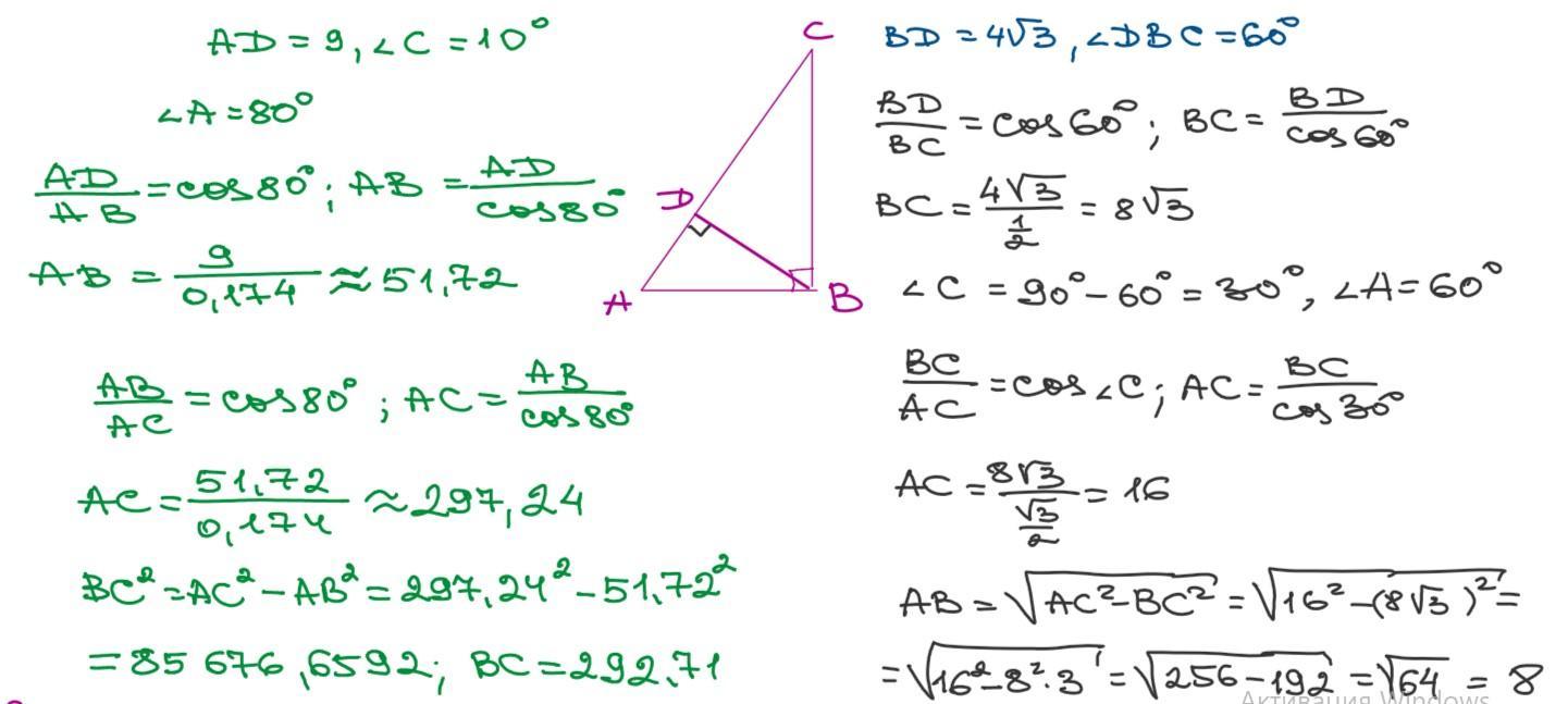 732. Отрезок BD высота прямоугольного треугольника АВС, прове-
