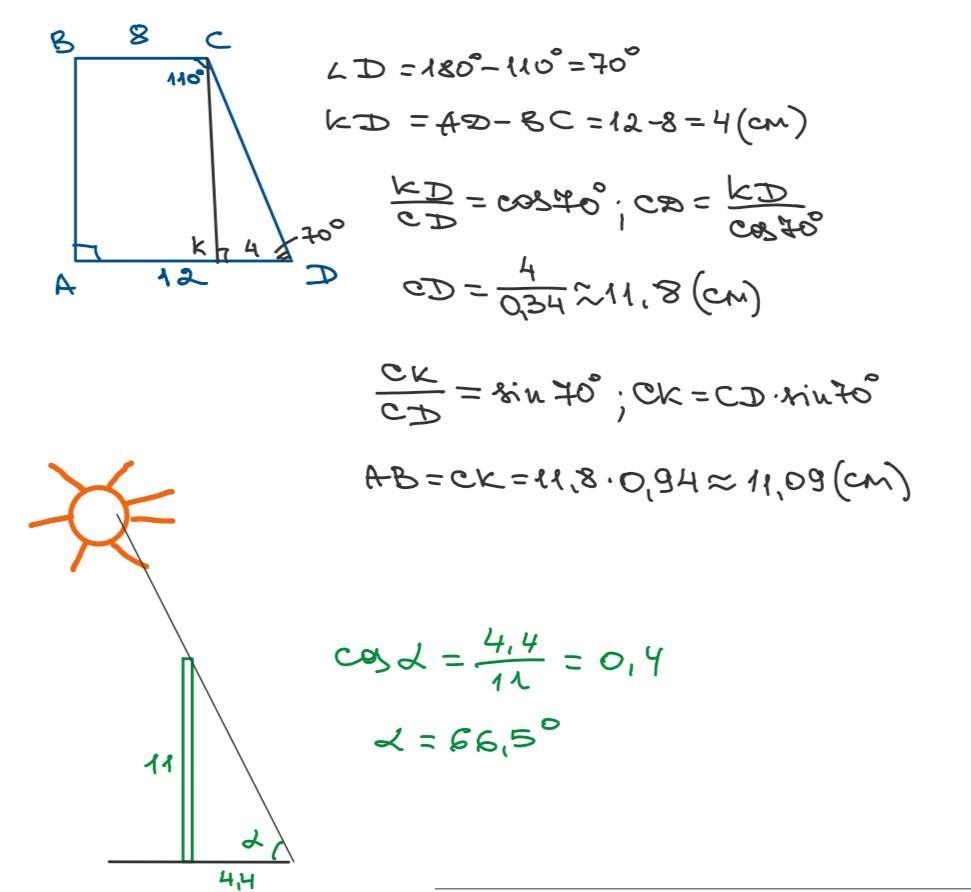 736. Тень от столба высотой 11 м равна 4,4 м. Выразите в градусах