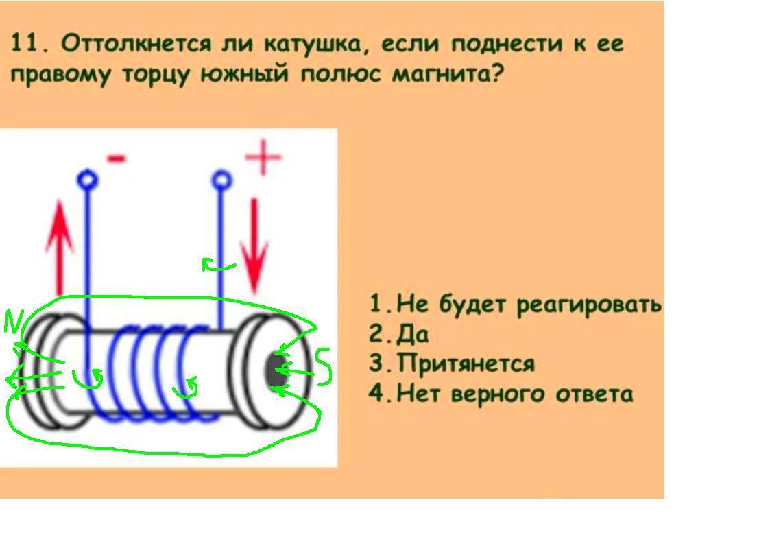 Тогда если поднести к правой стороне катушки магнит с .южным полюсом (полюсом S), катушка оттолкнется от магнита.