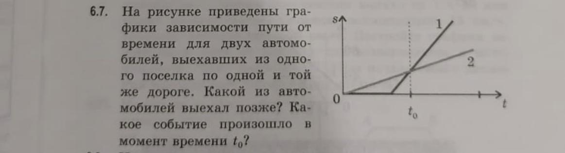 В момент времени tо первый автомобиль догнал второго.