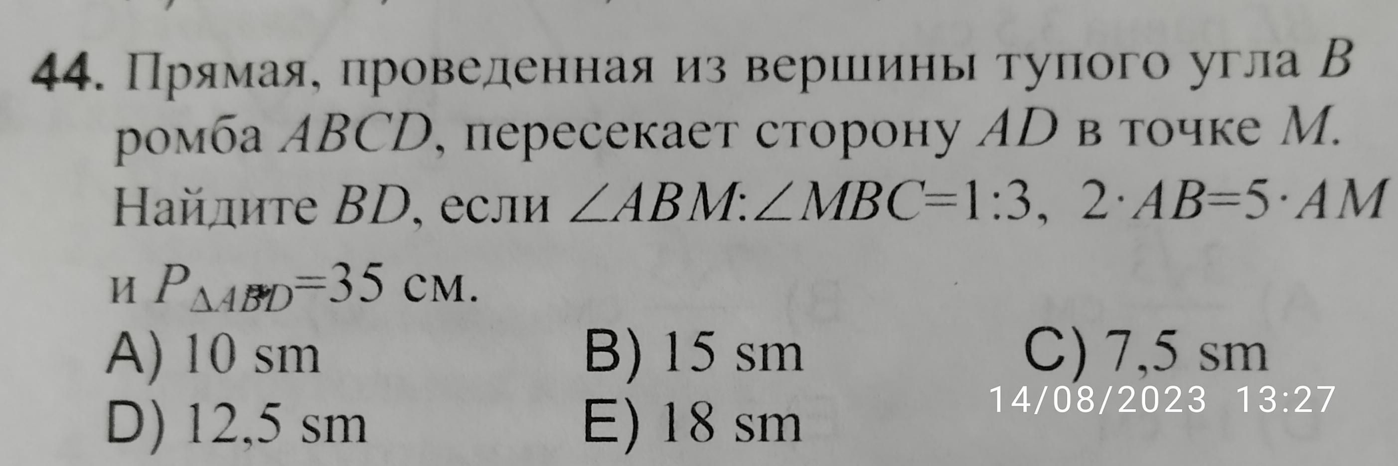 и ∠ ABM= ∠ MBC=α ⇒ BM– биссектриса угла ABD