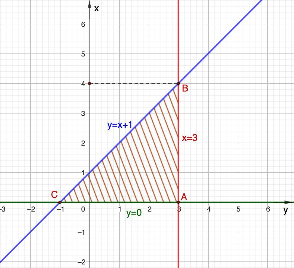 Получили треугольник АВС с вершинами А(3; 0), В(3, 4), С(-1; 0)