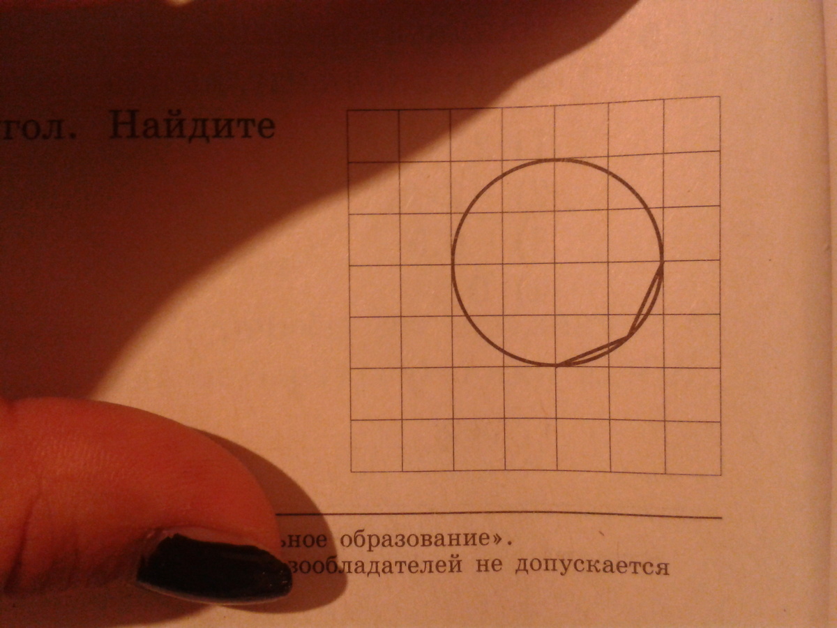 Можно мысленно разделить круг по клеткам на 4 части. Каждая из частей будет по 90 градусов,т.к. весь круг равен 360 градусов.Угол опирается на 3 части,значит опирается на дугу,равную 270 градусов. Вписанный угол равен половине дуги,на которую он опирается,т.е. 270/2=135 градусов.